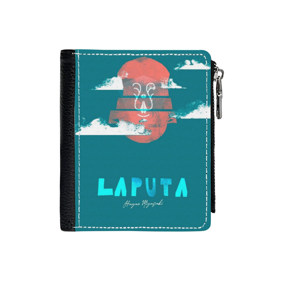 (Laputa Castle In The Sky_232) PU Wallet Compact Bifold with Zipper & Multiple Card Coins Slots Black Stylish Durable Graphic Design Print for Men Wom