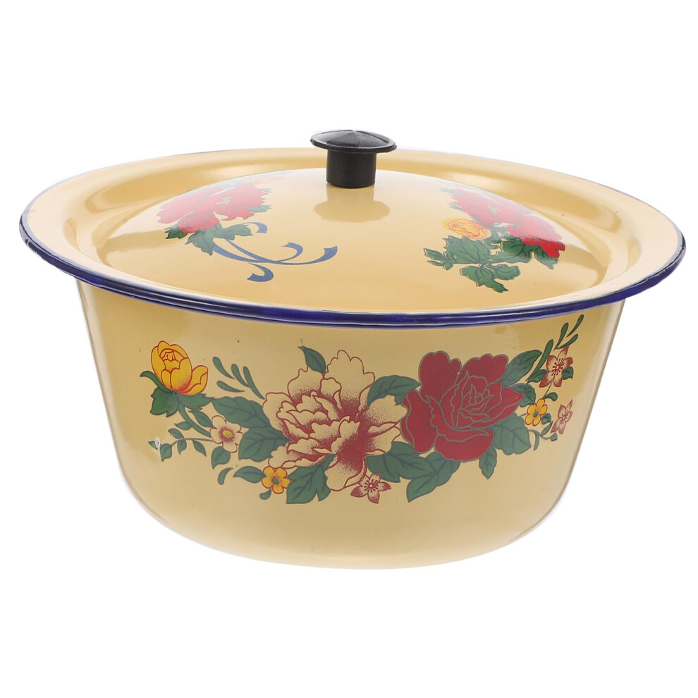 Decorative Bowl with Lid Oven Proof Dishes Lids Enamel Basin Vintage Lard