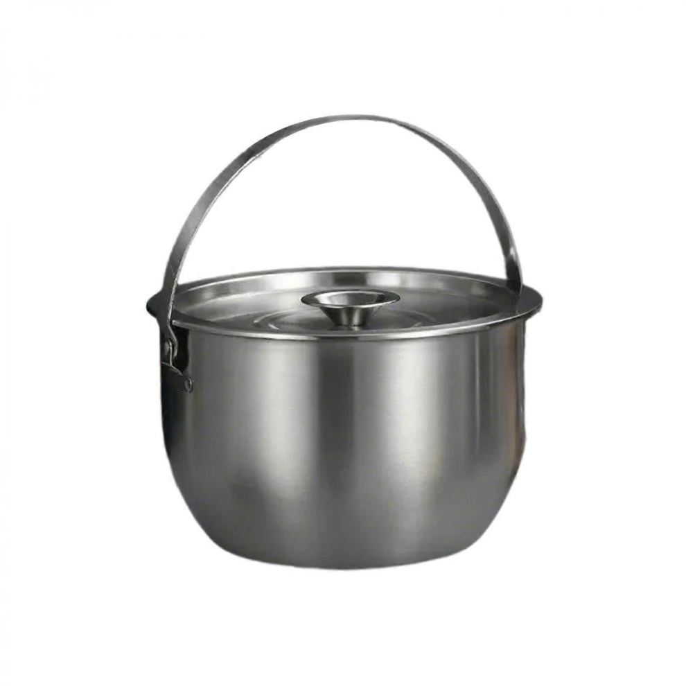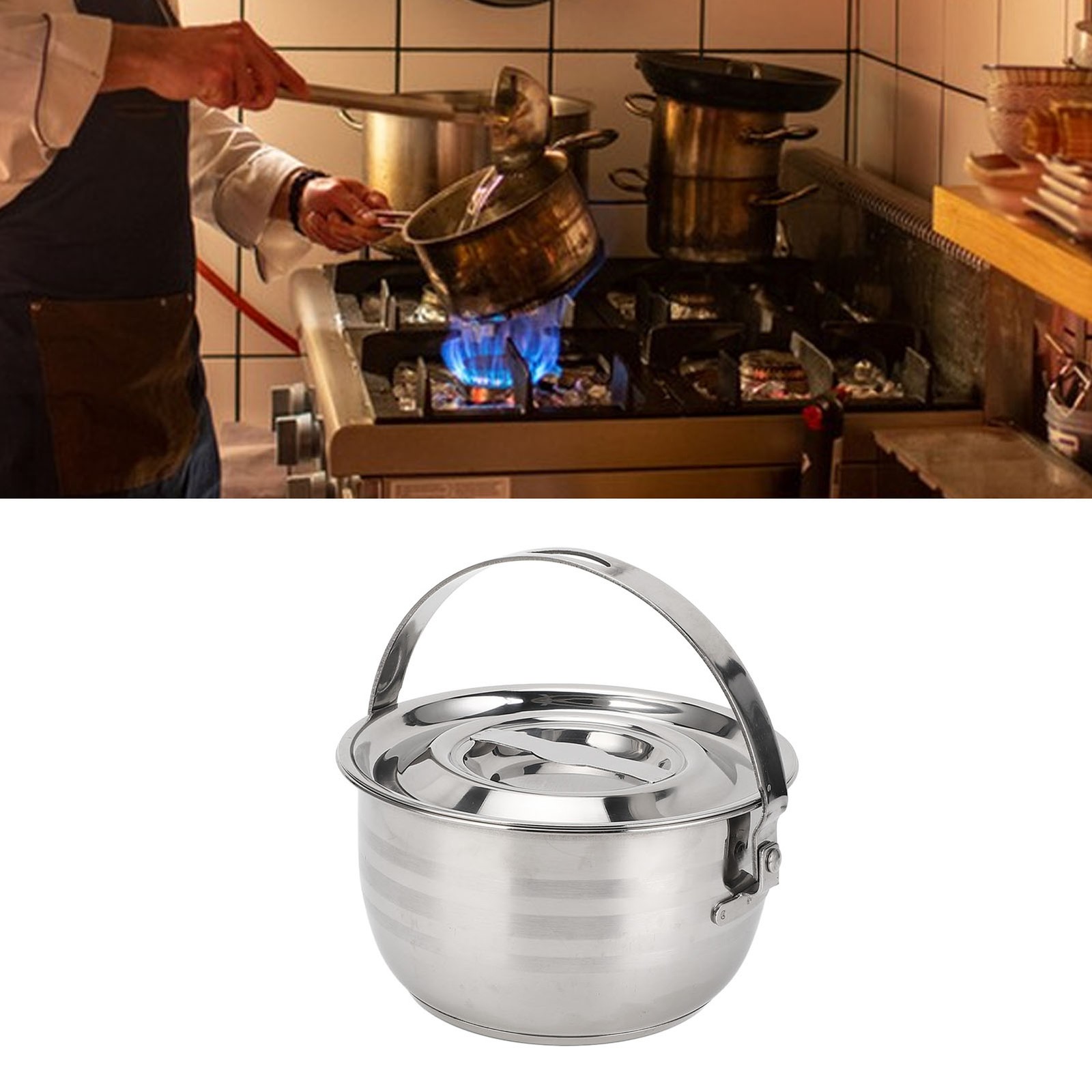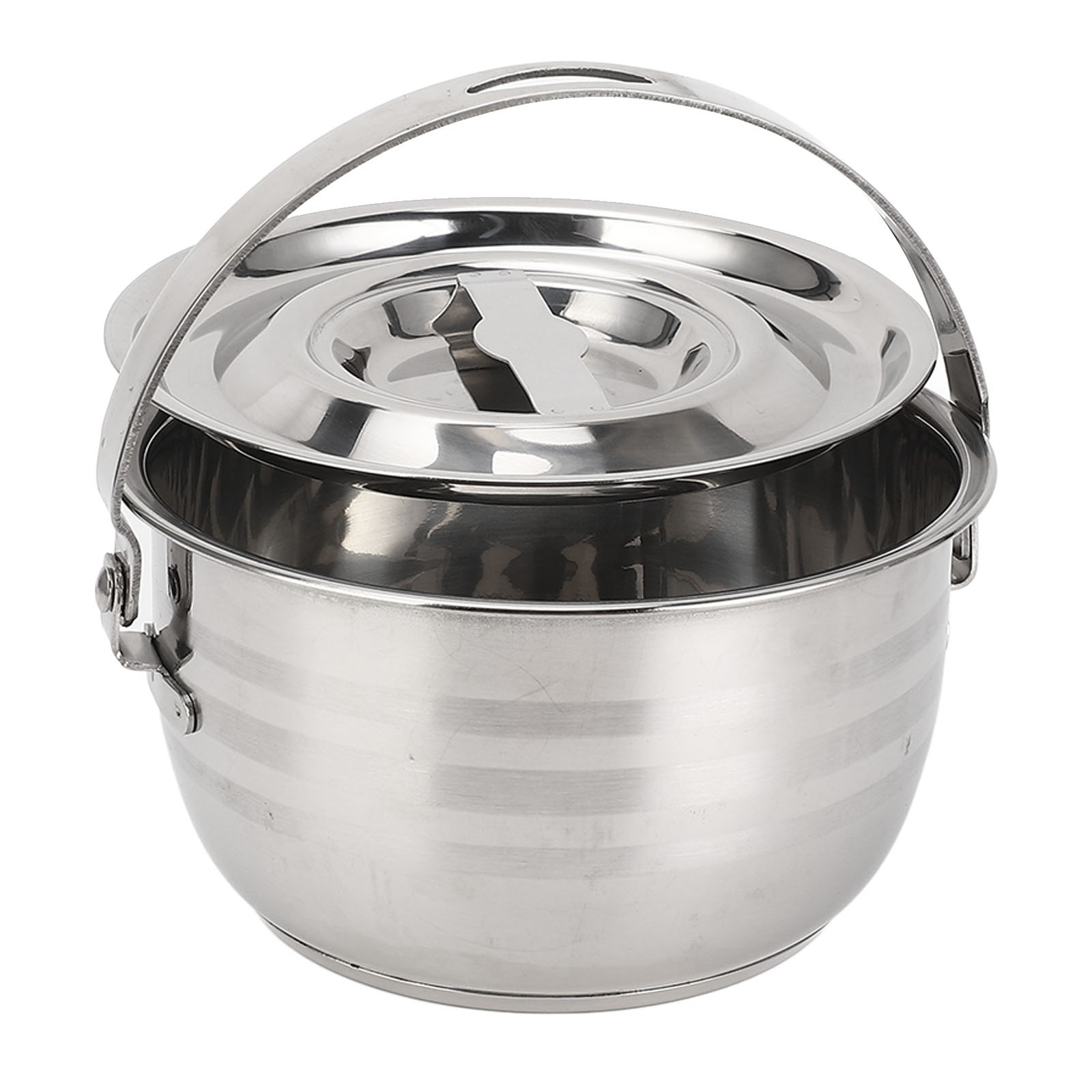 Camping Cooking Pot with Lid, Stainless Steel Picnic Bowl, Tableware, Egg Beater, Oil Storage Tank, Filter, Double Ear Lard Bowl