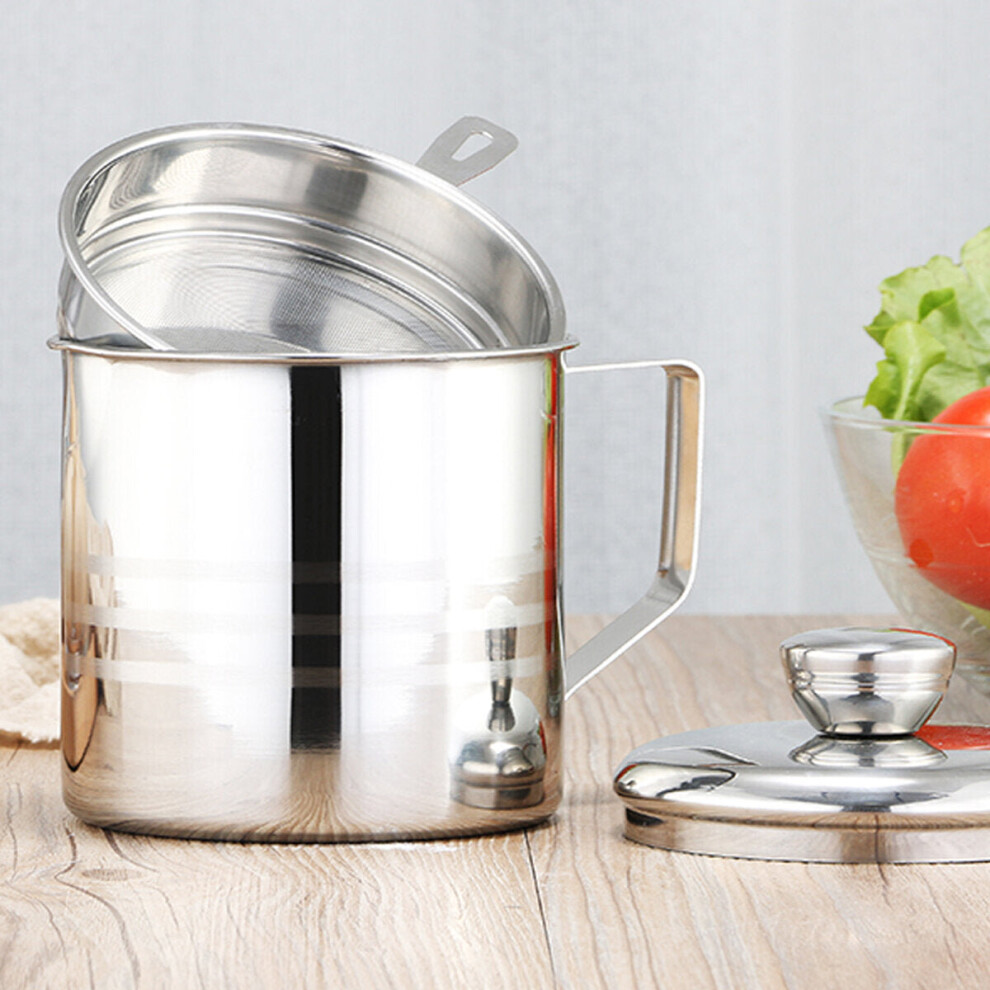 Thickened Stainless Steel Oil Filter Pot with Lid and Handle for Easy Grease Separation and Lard Storage