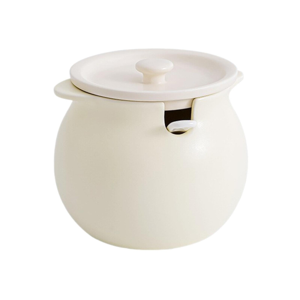 Porcelain Kitchen Container Canister with Lid and Spoon for Food Storage, Seasoning Jar, Lard Jar, White, M M Size