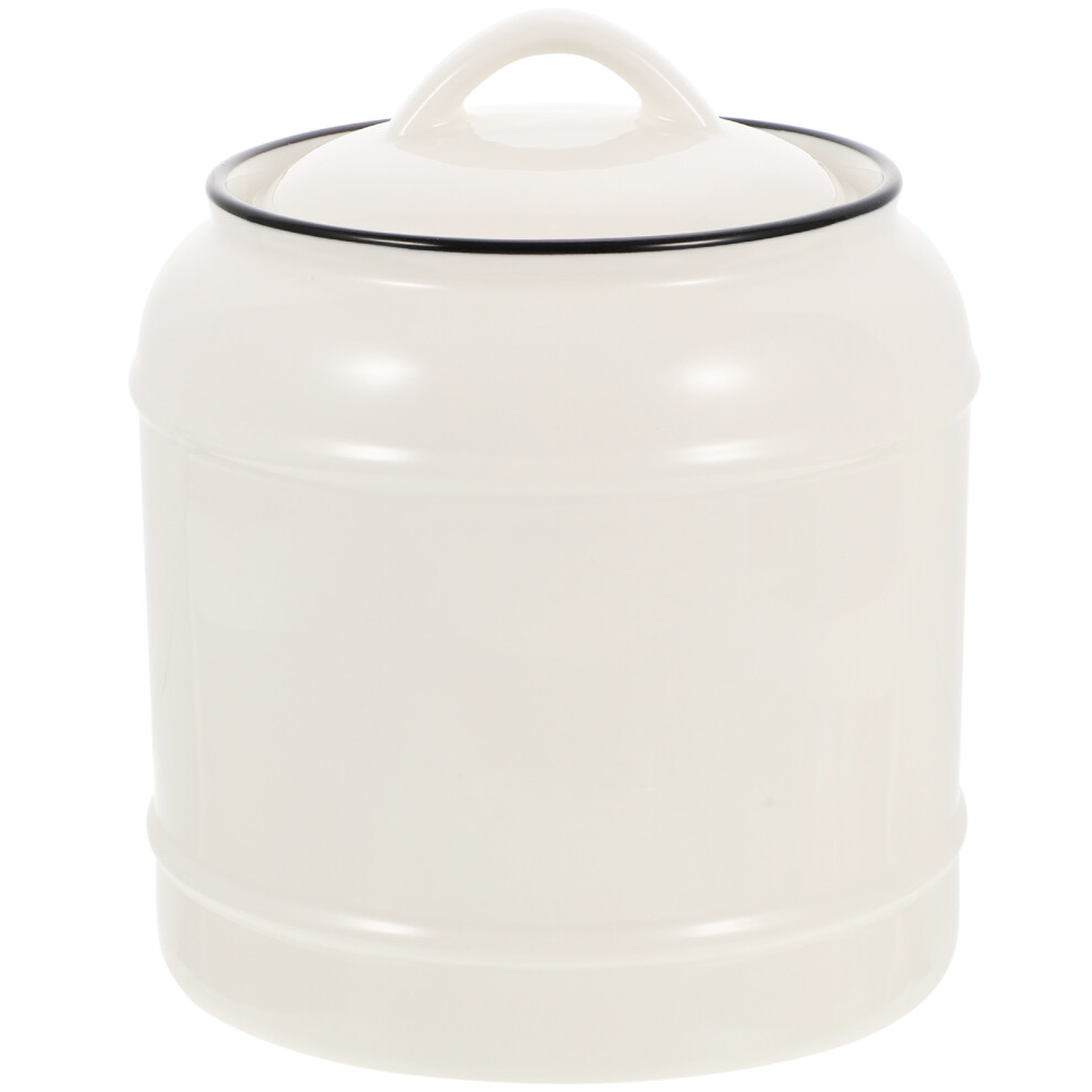 Retro Enamel Bowl With Lid Nostalgic Storage Canister For Lard And Mixing Bowls Random Robust Design