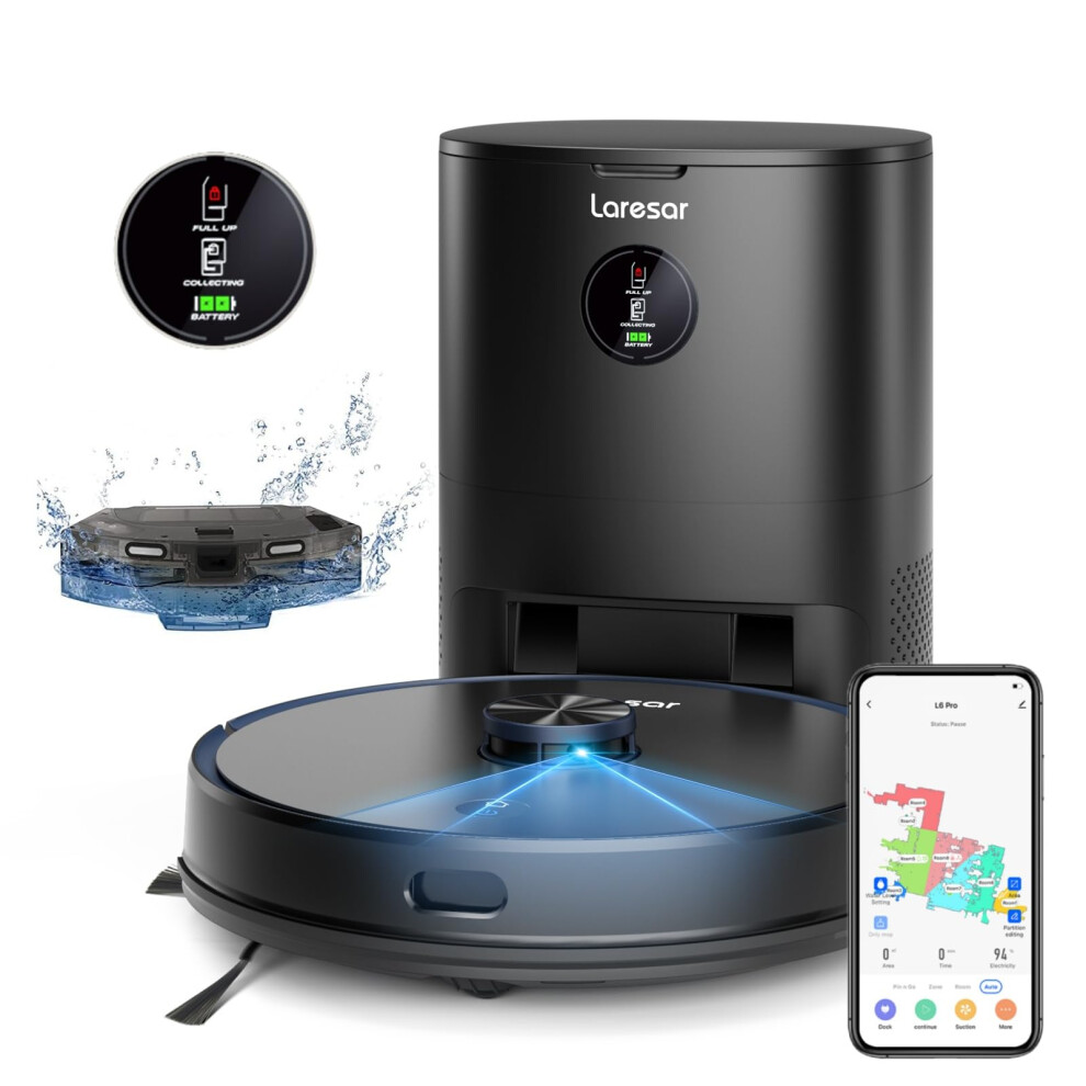 Laresar Clean Robot Vacuum Self Emptying, 5000Pa Robotic Vacuums with 60 Day Handsfree Cleaning, LiDAR Navigation Robot Vacuum Cleaner with Mop, WiFi/APP/Alexa, Pet Hair, Carpet and Hard Floor(L6 Nex)