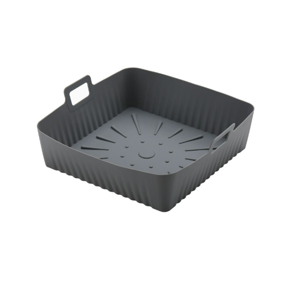 (large gray) Silicone Air Fryer Basket 1pc Reusable Airfryer Pan Liner Air Fryer Accessories Air Fryer Inner Liner