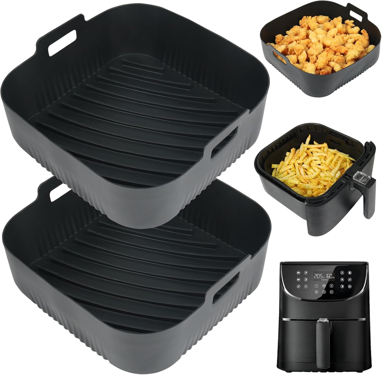 GINOYA 2pcs Large Air Fryer Liners, 21cm XXL Silicone Square Accessories for Vortex Plus 8.5L, Salter EK4628 8L, LLIVEKIT 7L