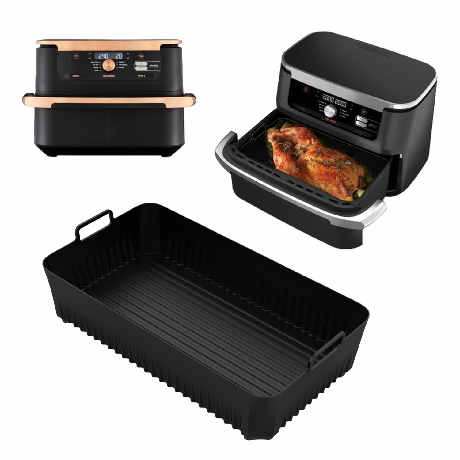 Pietuley Large Silicone Air Fryer Liners for Ninja Flex Drawer Air Fryer Accessories AF500UK/ Cosori Dual Blaze TwinFry 10L / Ninja Foodi Flexdrawer Dual Air Fryer 10.4L AF500UK