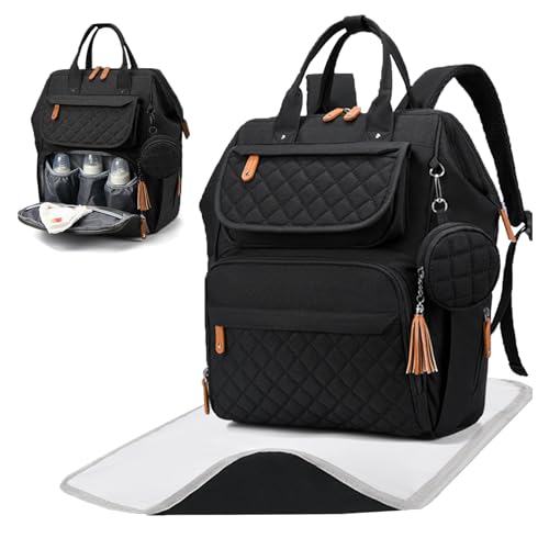 NUBILY Baby Changing Backpack Rucksack Changing Bag with Insulated Pockets Water Resistant Large Nappy Bag Diaper Back Pack for Dad and Mom Black