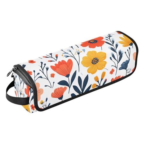 2-in-1 Curling Iron Travel Case with Heat Resistant Pad Large Capacity Hair Tool Organizer for Hot Tools Curling Iron Flat Irons Hair Volumizer Styler, Florals Cute Spring Flowers White