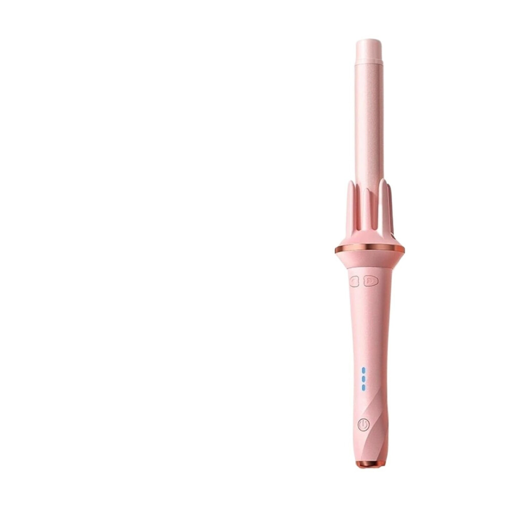 Automatic Cordless Curling Iron 1 Inch Large Rotating Barrel Hair Curler Pink with Intelligent Temperature Control and Ceramic Coating