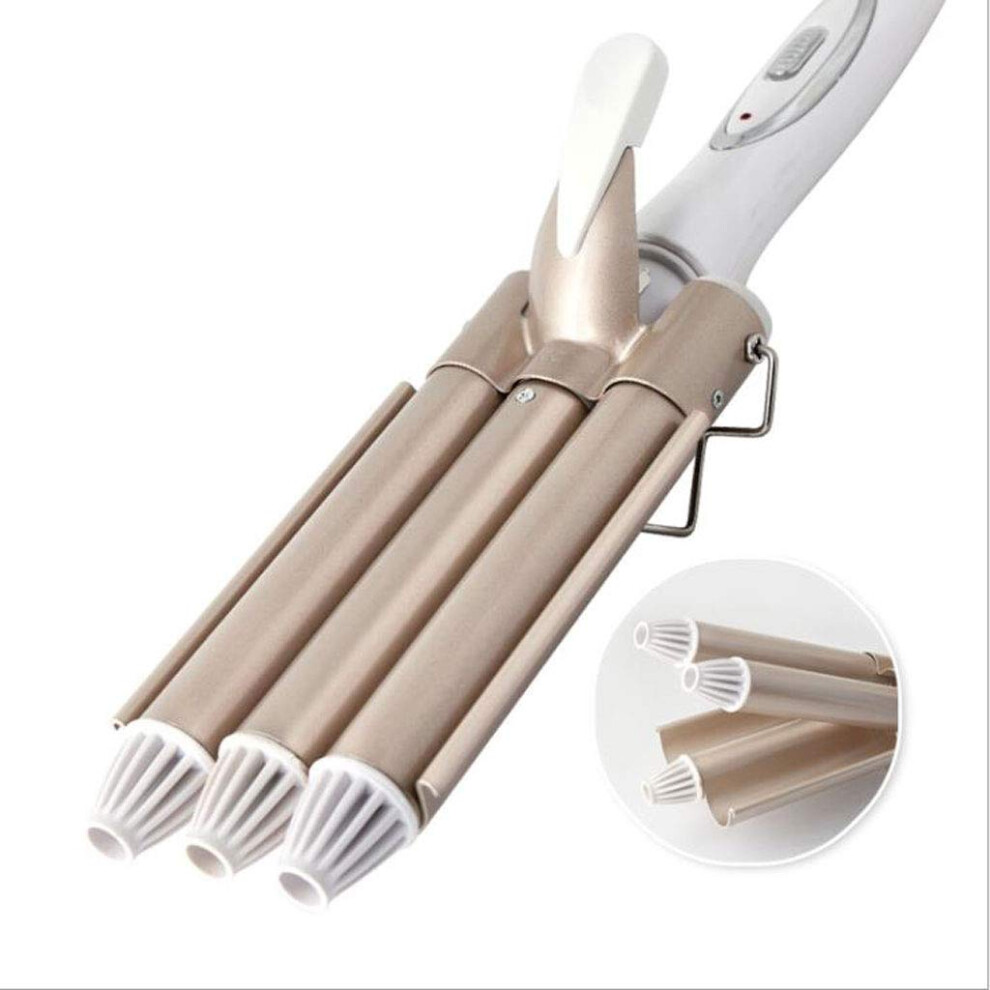 (EU Plug) 3 Barrel Curling Iron Adjustable Temp Gold Large for Home Salon