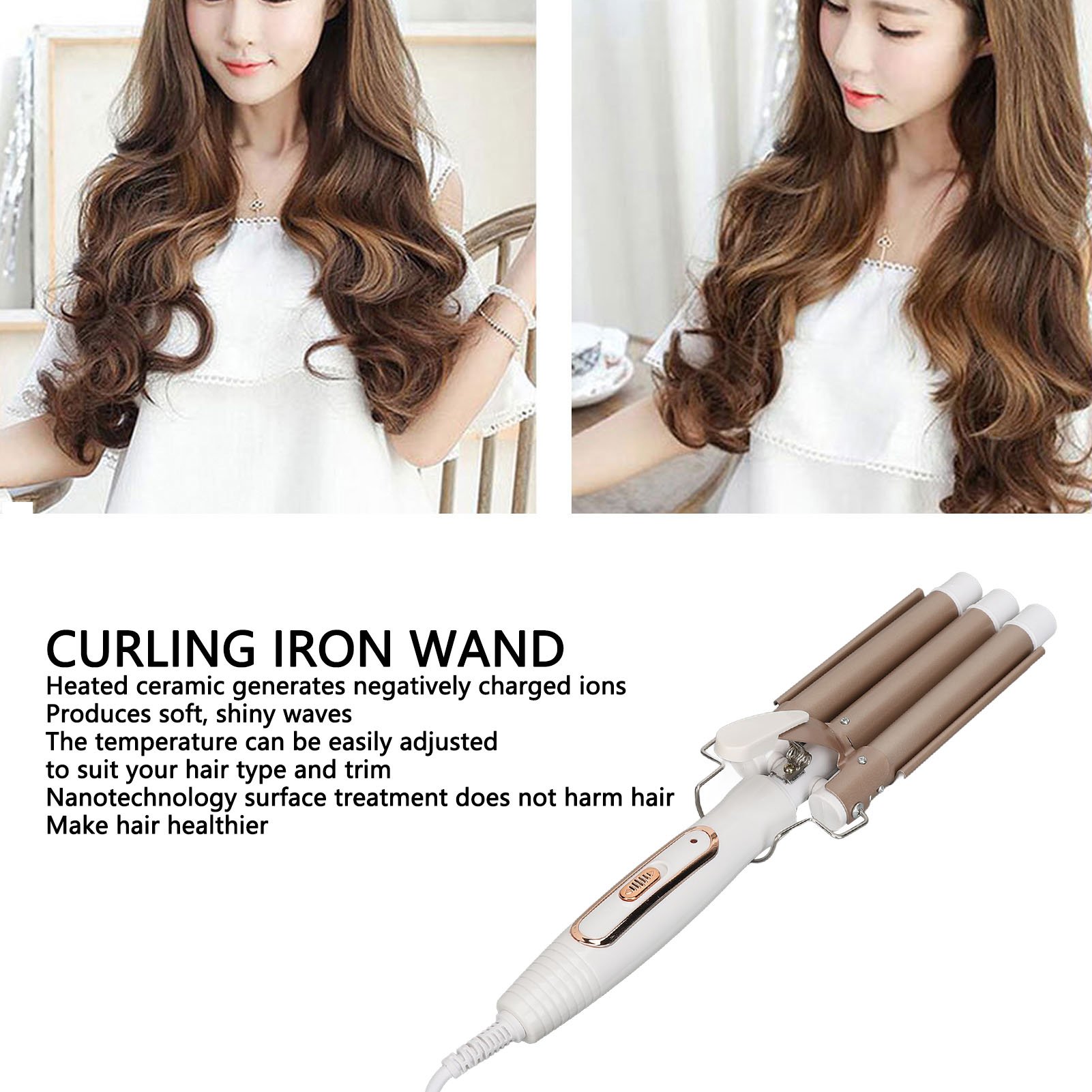 (As show, One size) Curling Iron, 3-Barrel Hair Styling Tool with Adjustable Temperature, Fast Heating, Large Waves for Long and Short Hair