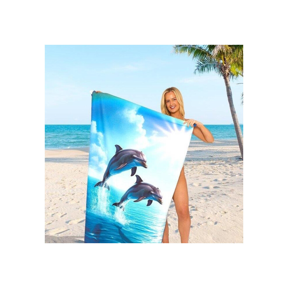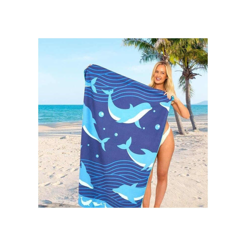 (Dolphins, 100cm x 180cm ( Designs)) Jumbo Beach Towel, Sand Free Beach Towels for Adults, Quick Dry Extra Large Beach Towels for Adults, 100% Recycle