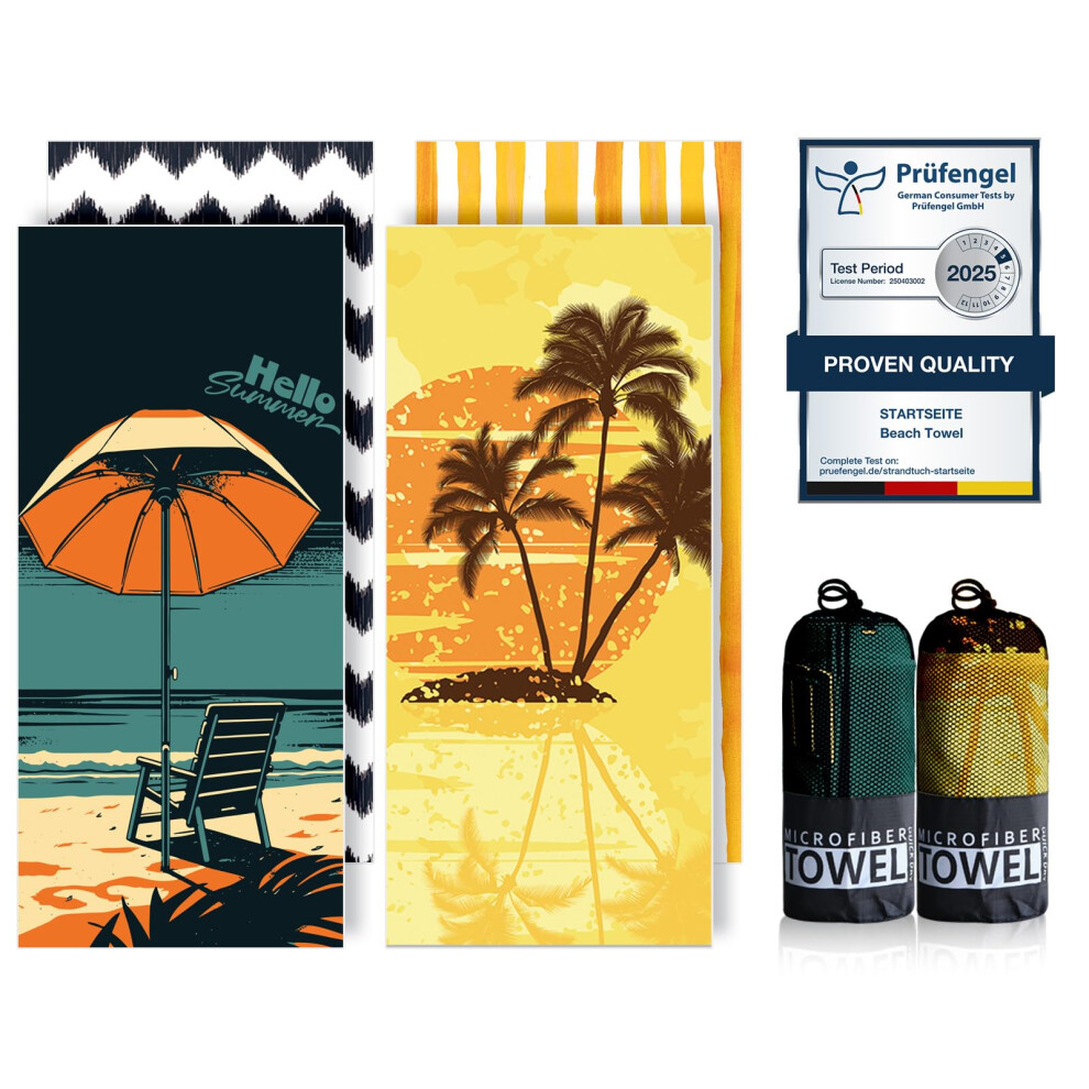 Extra Large Microfiber Beach Towels 71x32" - Sand-Free, Quick-Dry, Soft & Sty...
