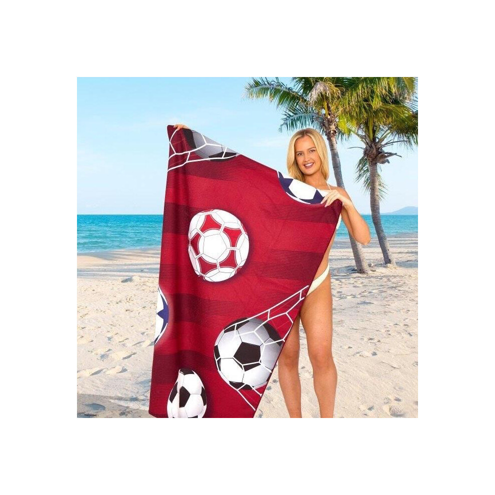 (Football Red, 100cm x 180cm ( Designs)) Jumbo Beach Towel, Sand Free Beach Towels for Adults, Quick Dry Extra Large Beach Towels for Adults, 100% Rec