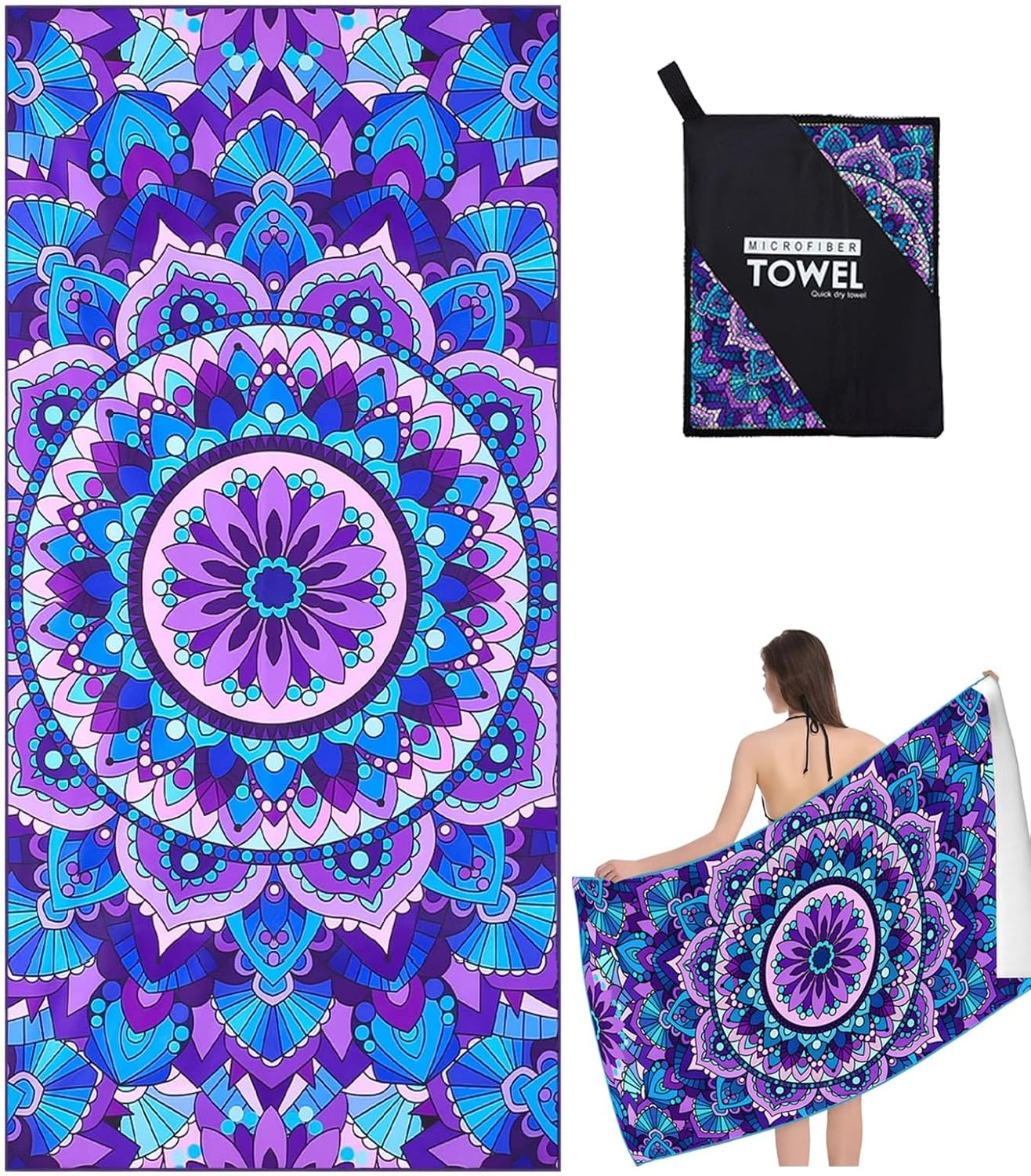 (As show, One size) HEYTEA Microfiber Beach Towel - Large Beach Blanket Towels Ultra Soft Strong Water Absorbent Pool Bath Towel for Women Girls Men A