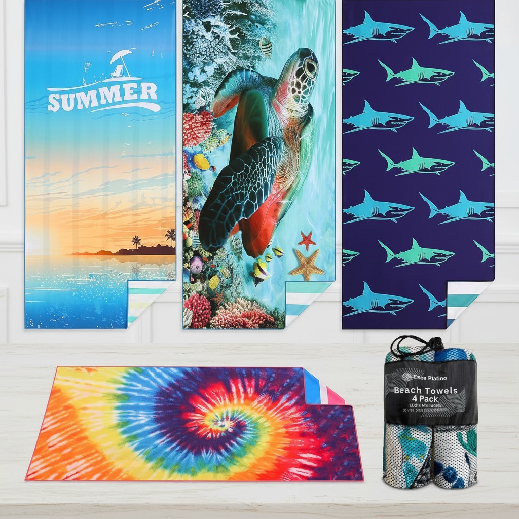 Casa Platino Extra Large Beach Towels 4-Pack – 71"x32" Sand-Free, Quick-Dry Microfiber – Lightweight & Double-Sided Swim, Pool, Travel & Beach Essentials Towels for Men, Women & Kids – Byron Bay