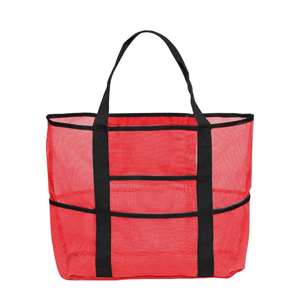 (-, RD) High Capacity Summer Large Beach Bag For Towels Mesh Durable Beach Bag For Toys Waterproof Underwear Pocket Beach Tote Bag #T3G