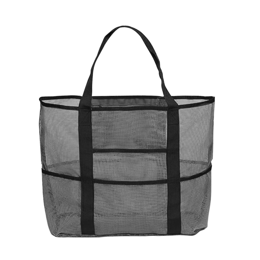 (-, BK) High Capacity Summer Large Beach Bag For Towels Mesh Durable Beach Bag For Toys Waterproof Underwear Pocket Beach Tote Bag #T3G