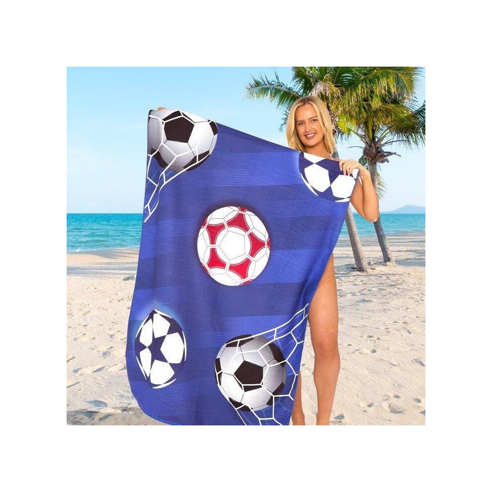 (Football Blue, 100cm x 180cm ( Designs)) Jumbo Beach Towel, Sand Free Beach Towels for Adults, Quick Dry Extra Large Beach Towels for Adults, 100% Re
