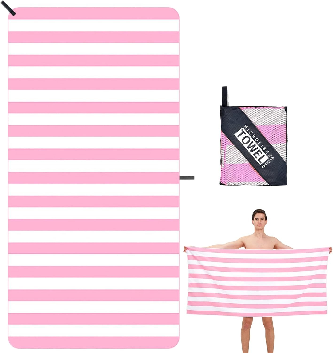 Microfibre Beach Towels for Adults - 200x90cm 2 Pack Extra Large Beach Towels in Gift Boxed, 250 GSM, Sand Free, Lightweight & Quick Dry Beach Towel for Swim, Travel and Gym(Pink Stripe & Blue Stripe)