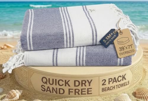 Beach Towel - Large Turkish Beach Towels for Camping, Swimming, Bath, Gym, Picnic - Quick Dry, Super Absorbent, Lightweight, Compact Cotton Hammam