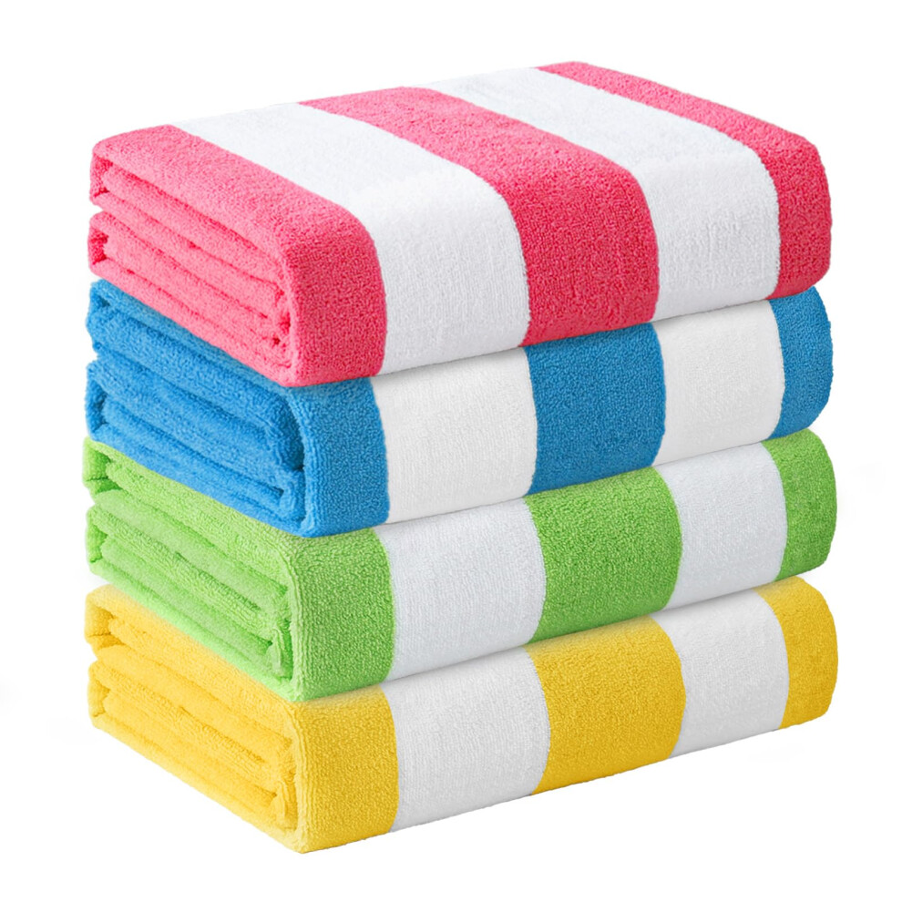 Whale Flotilla 4 Pack Microfibre Large Quick Dry Beach Towels, Sand Free Bath Travel Pool Towel Lightweight and Absorbent, Striped