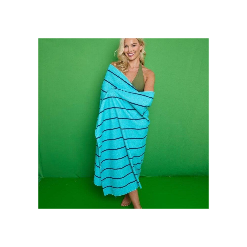 (Aqua-Navy, 100cm x200cm (stripes)) Jumbo Beach Towel, Sand Free Beach Towels for Adults, Quick Dry Extra Large Beach Towels for Adults, 100% Recycled