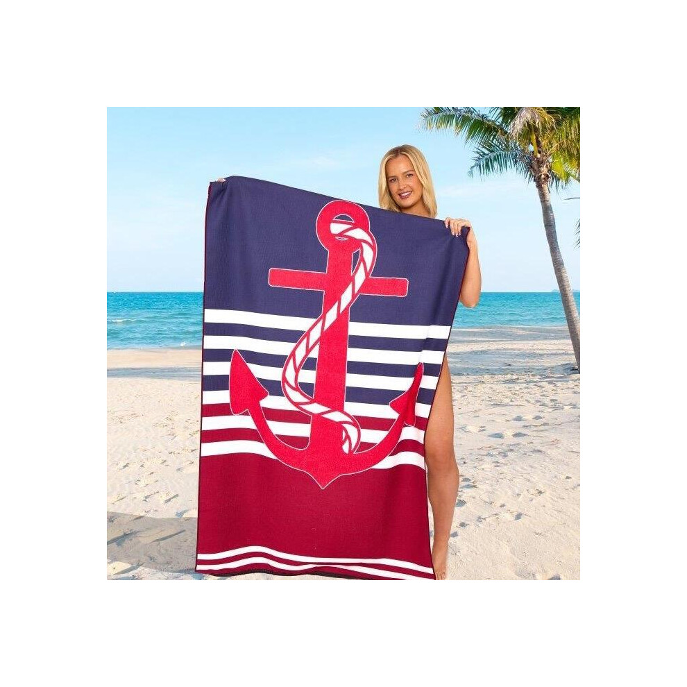 (Anchor, 100cm x 180cm ( Designs)) Jumbo Beach Towel, Sand Free Beach Towels for Adults, Quick Dry Extra Large Beach Towels for Adults, 100% Recycled