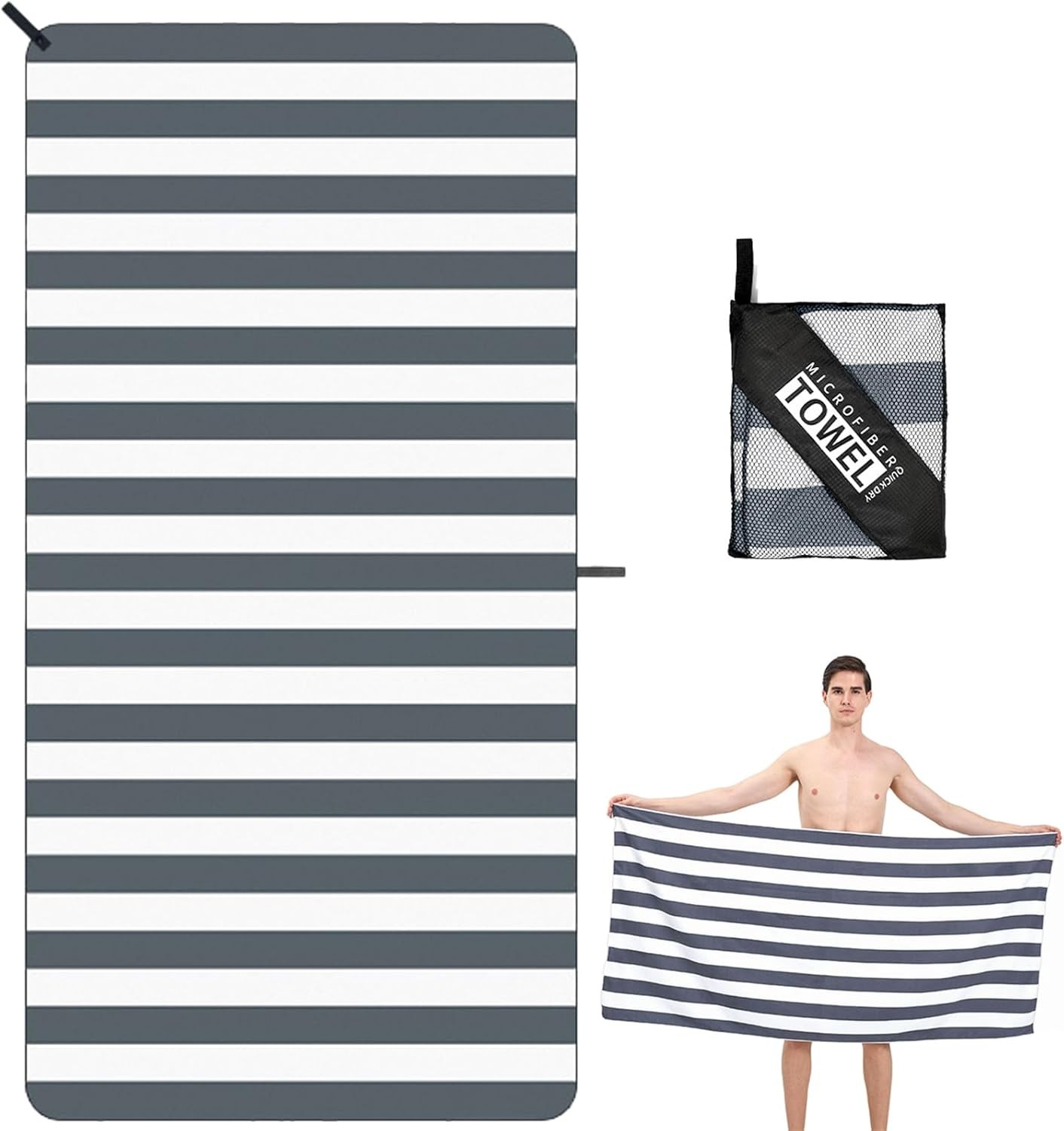 Bornbay Large Beach Towel Oversized - 40"X70" Big Mens Beach Towesl, Extra Large Thick Gray Beach Towels, XL Wide Fluffy Swimming Towel Oversize, Giant Stripe Cotton Pool Towel for Adults