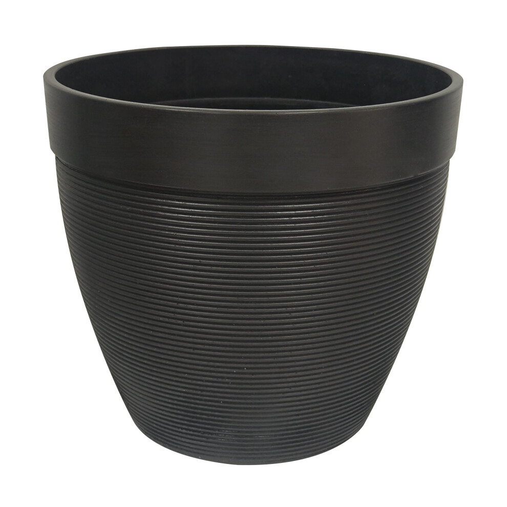 Olly & Rose Artstone Black 25cm Plant Pot Black - Horizontal Lines Large Plant Pots Outdoor and Indoor - Planters - Flower Pots