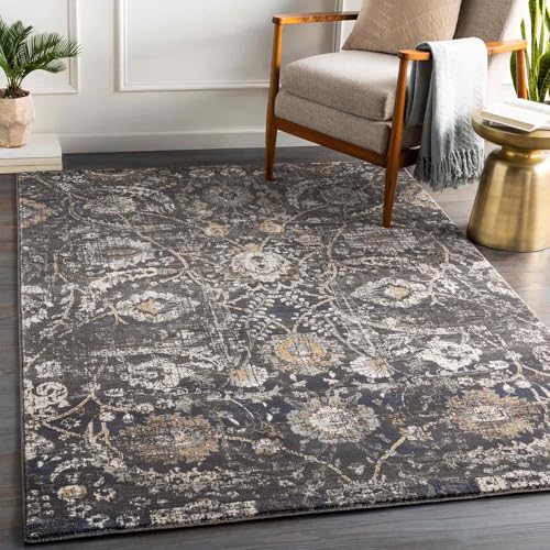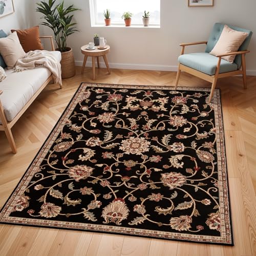 COZYLOOM Vintage Rug 6x9 Area Rug for Living Room Washable Bedroom Rug Traditional Black Large Area Rug Soft Non Slip Throw Rugs Low Pile Stain Resistant Carpet for Dining Room 6'x9' Black