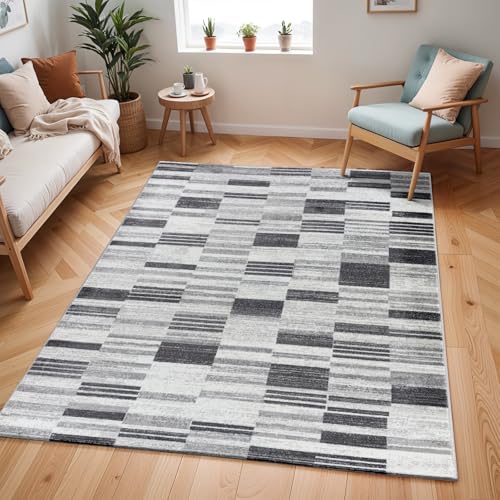 Leesentec Rugs Living Room Bedroom Rug Modern Short Pile Rugs Bohemian Carpet Abstract Geometric Straight Line Pattern Carpets Non-slip Large Rug (Beige/Striped Black, 160 x 200 cm)