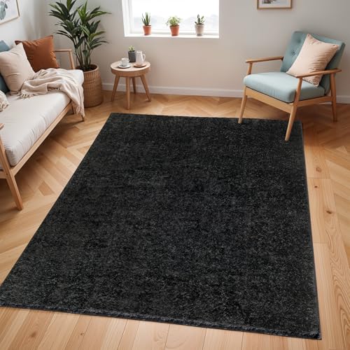 Leesentec Rugs Living Room Area Rug Soft Anti Slip Bedroom Carpet Fluffy Rug Shaggy Floor Mats Large Rugs for Living Room(Black,135 x 185 cm)