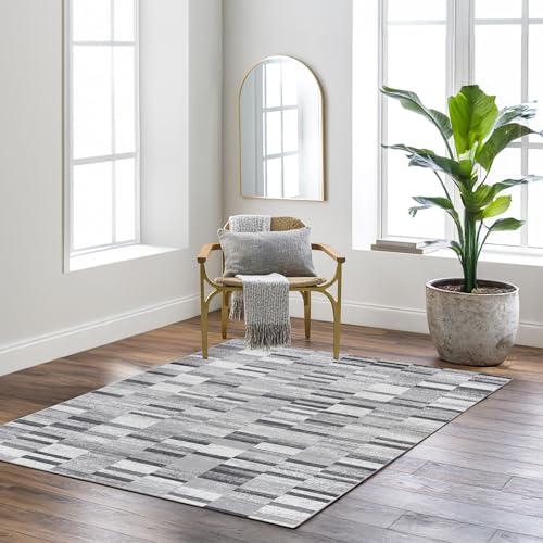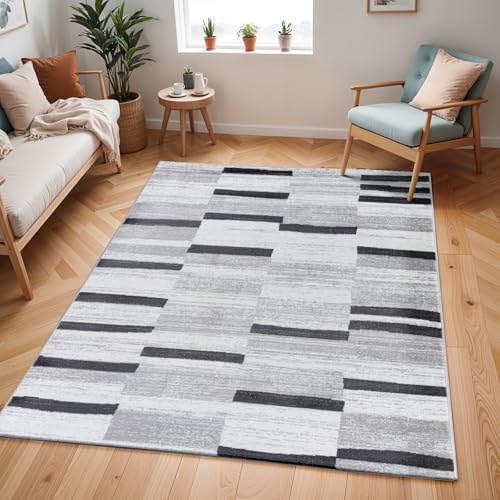 Livabliss Arena Geometric Rug - Scandi Area Rugs Living Room 160x220 cm, Dining, Kitchen - Neutral, Abstract Patterned Rugs, Boho Style, Easy Care Pile - Large Rug, Black Grey, White