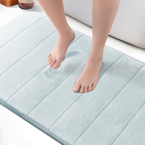 KEPLIN Memory Foam Bath Mat (Light Blue - 60 x 90cm), Ultra-Soft, Absorbent & Non-Slip Bathroom Mat, Machine Washable, Large Black Bathroom rug for Bath & Toilet Floors