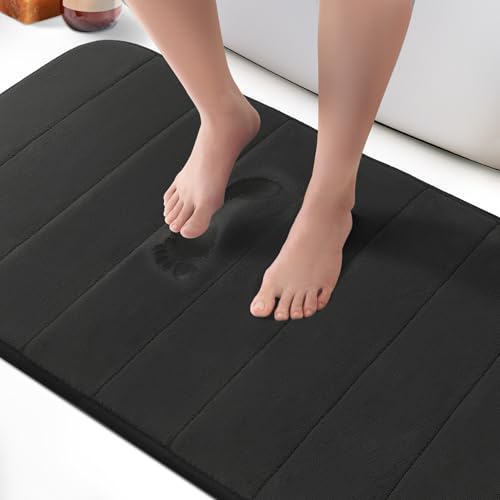 KEPLIN Memory Foam Bath Mat (Black - 60 x 90cm), Ultra-Soft, Absorbent & Non-Slip Bathroom Mat, Machine Washable, Large Black Bathroom rug for Bath & Toilet Floors