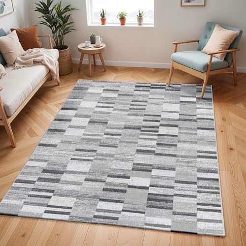 Leesentec Rugs Living Room Area Rug Soft Anti Slip Bedroom Carpet Fluffy Rug Shaggy Floor Mats Large Rugs for Living Room(Grey/Black,120 x 160 cm)