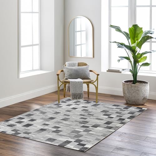 Tinyboy-hbq Black Grey Area Rugs Large Area Rugs Non-Slip Soft Fluffy Indoor Living Room Bedroom Nursery Rug for Home Decor Black Grey 200x200cm