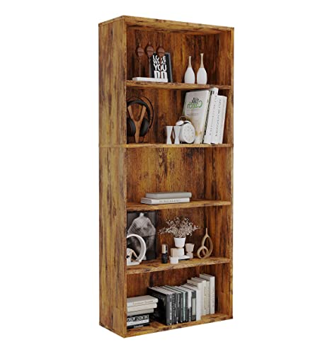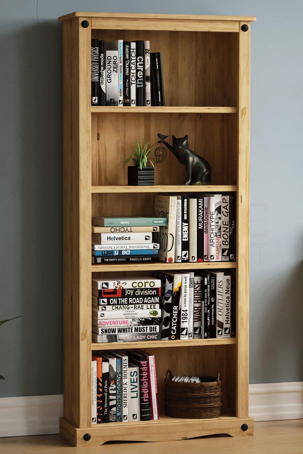 Corona Bookcase Large Tall 5 Shelf Solid Wood Pine Wooden Living Room Shelving Open Display Office Bedroom Storage Dresser 180cm High 82cm Wide 29cm Deep