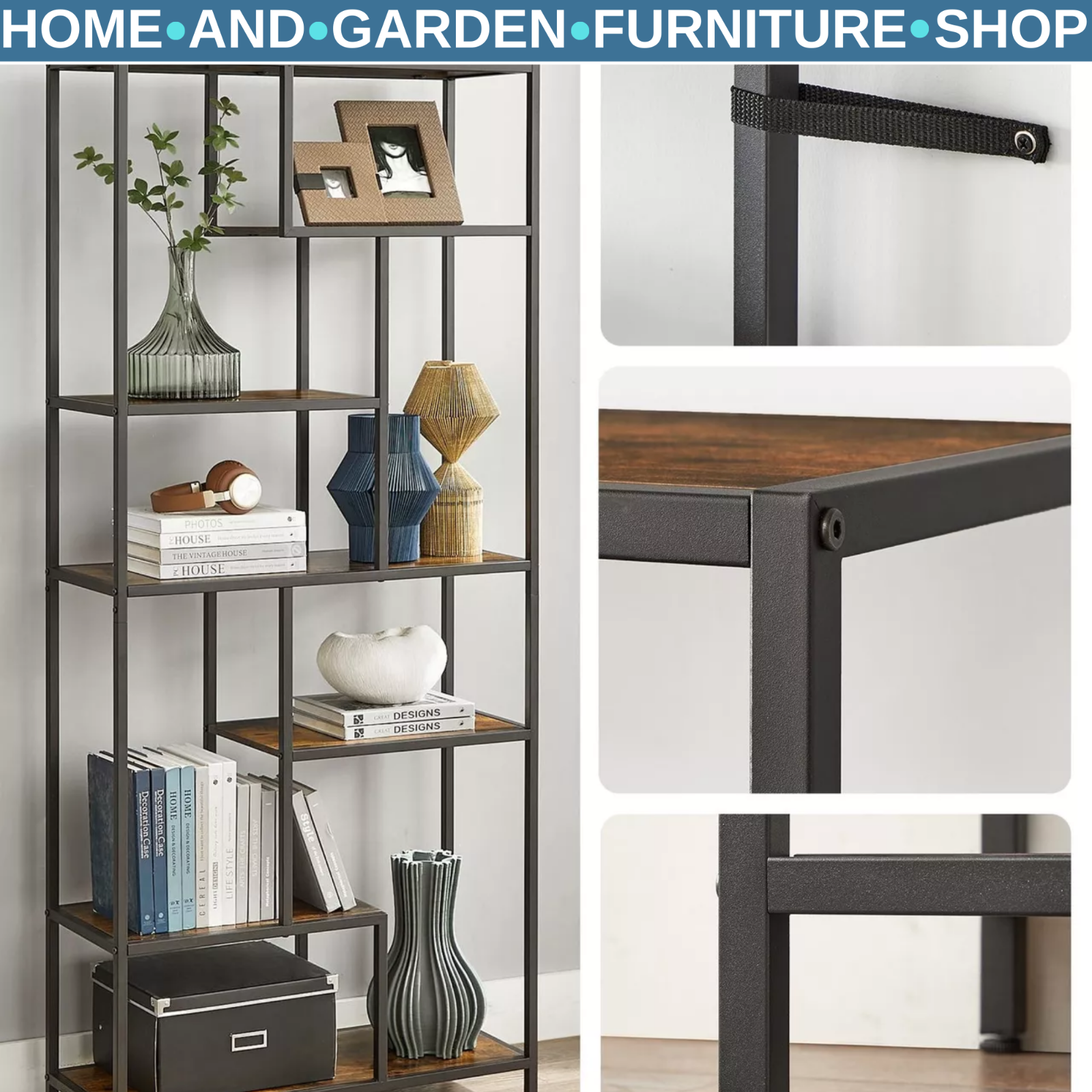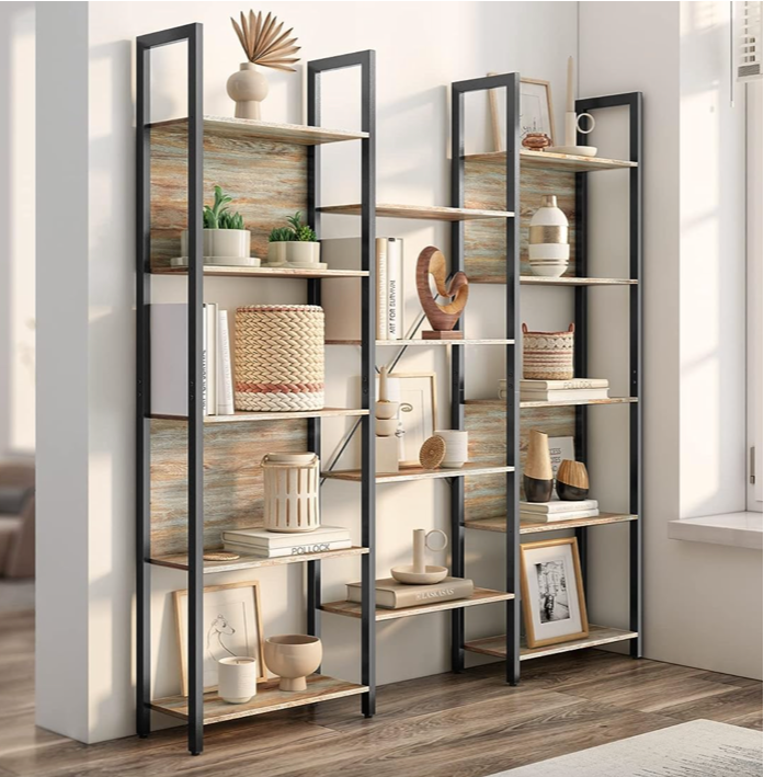 Large Industrial Bookcase Display Storage Shelving Unit Metal Slim Rustic Style