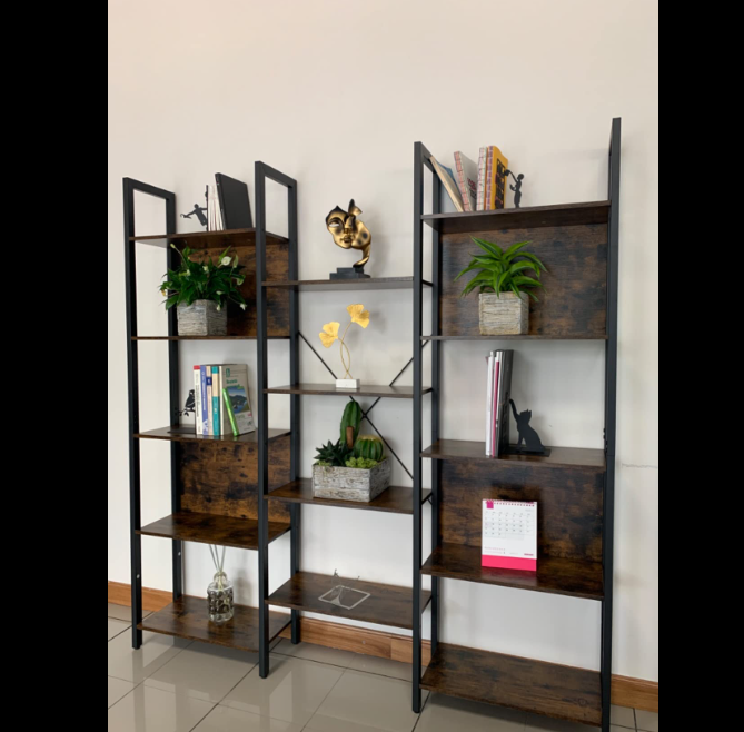 Large Industrial Bookcase Rustic Metal Ladder Shelf Unit Vintage Display Cabinet