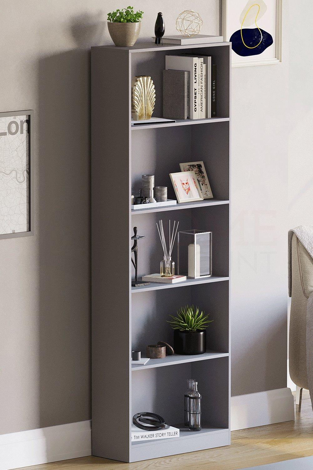 Vida Designs Cambridge 5 Tier Extra Large Bookcase, Grey Wooden Shelving Display Storage Unit Office Living Room Furniture