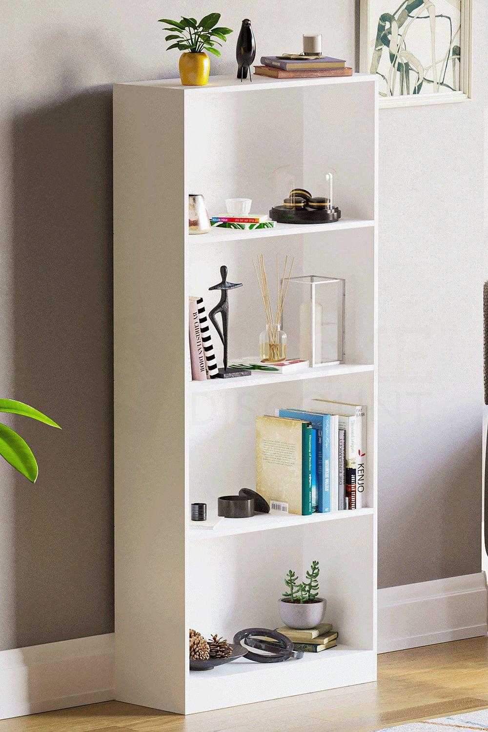 Lillyvale Large Bookcase Bookshelf Black White 4 Wood Tier Shelves Free Standing Shelving Storage Display Unit Organizer for Living Room (White)
