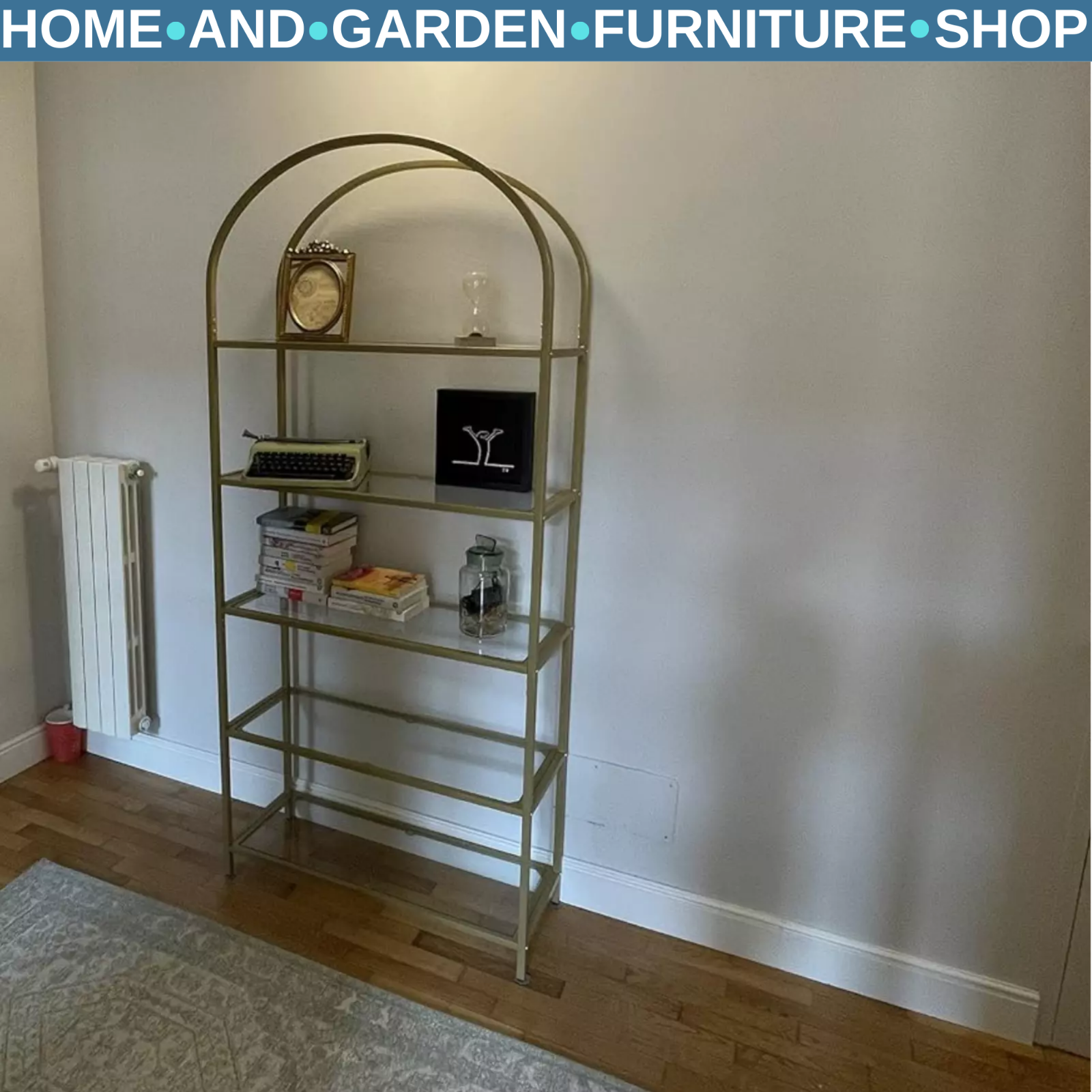 Gold Display Cabinet Glass Storage Large Bookcase Vintage Metal Tall Shelf Unit