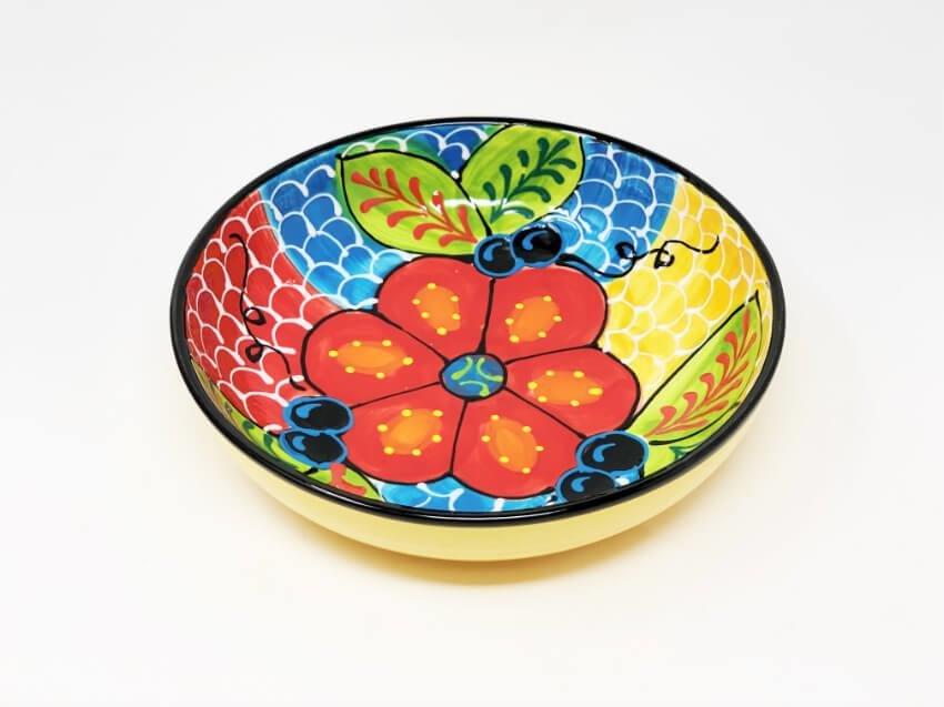 Classic Spanish Hand Painted Kitchen Dining Decor Large Bowl (Diam) 30cm Red/Yellow Flower