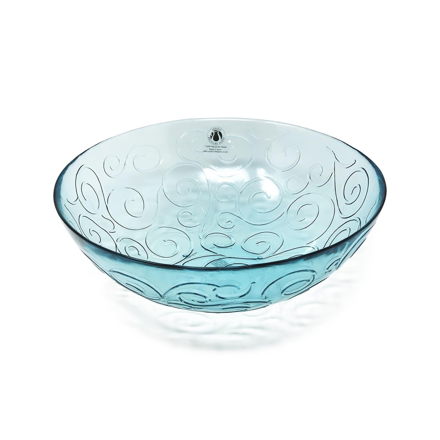 Recycled Glass Ice Blue/Clear Swirl Kitchen Dining Large Food Bowl (Diam) 30cm