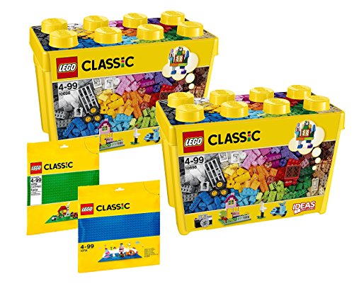 LEGO Super Maxi Set: 2 x 10698 Large Building Blocks Box + 10700 Green Building Plate + 10714 Blue Building Plate
