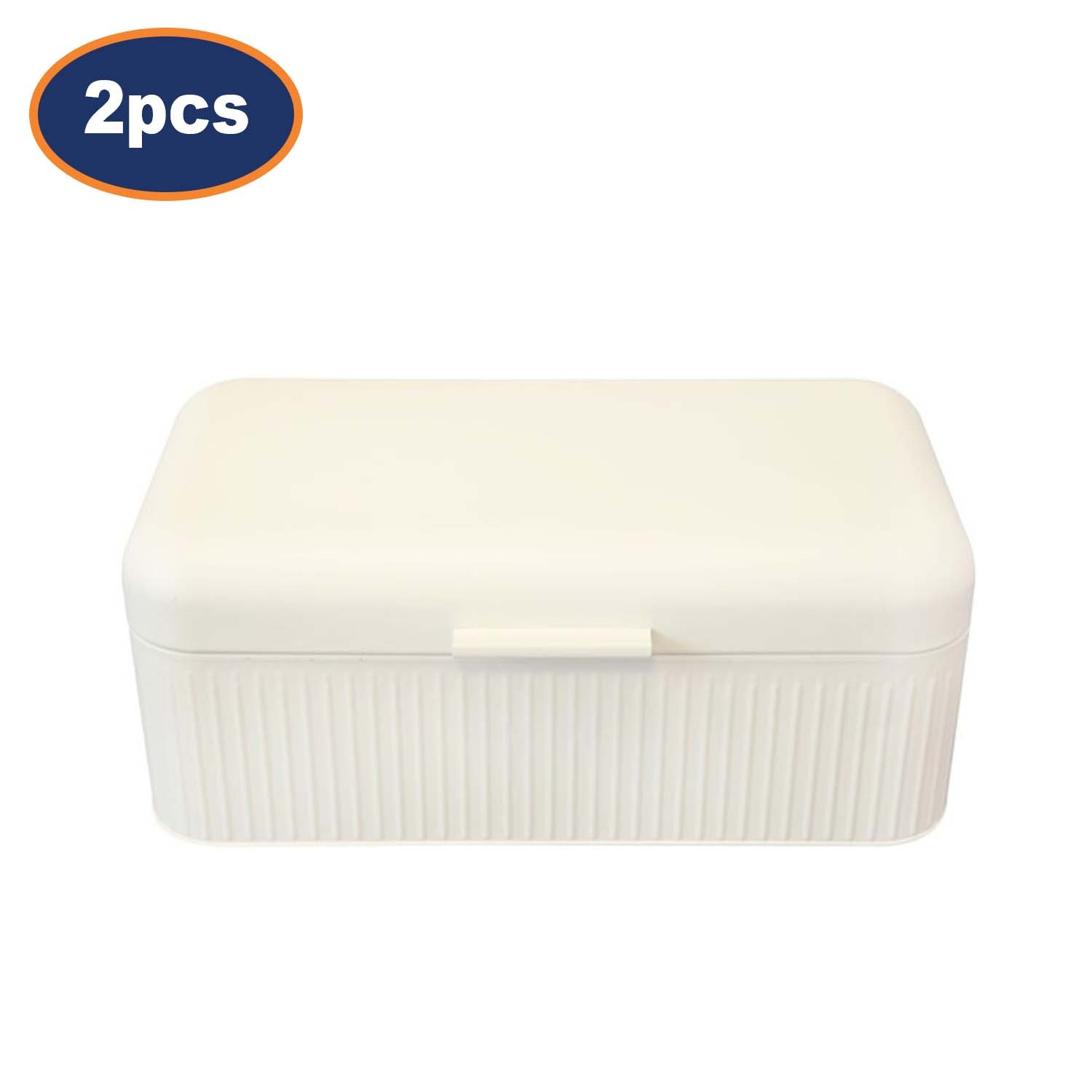 Large Bread Bin 15L Metal Ivory Loaf Baked Goods Storage Canister Hinged Lid 2pc