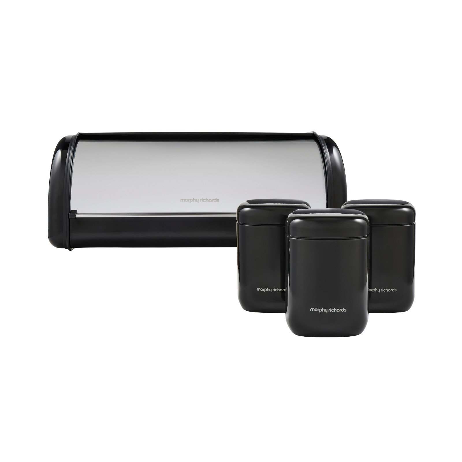 Morphy Richards Equip Black Large Roll Front Bread Bin & Large Storage Canisters