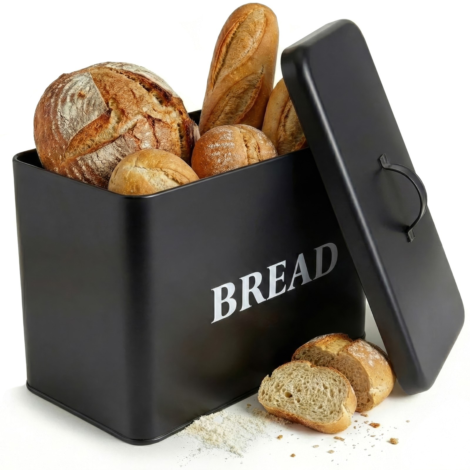 Large Bread Bin for Kitchen Storage - Black Bread Box | Bread Storage Container